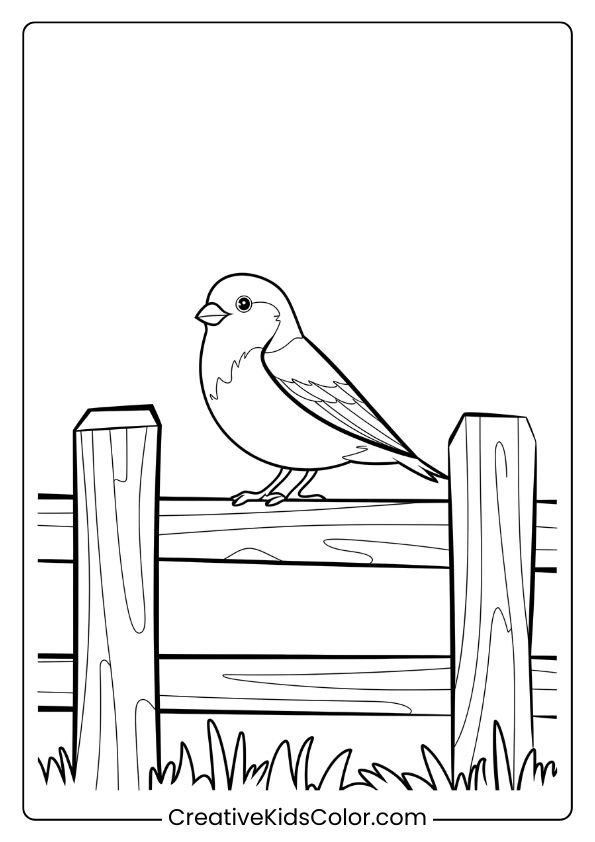 A Bird On A Fence In The Countryside, Perfect For A Simple And Rustic Bird Coloring Page.